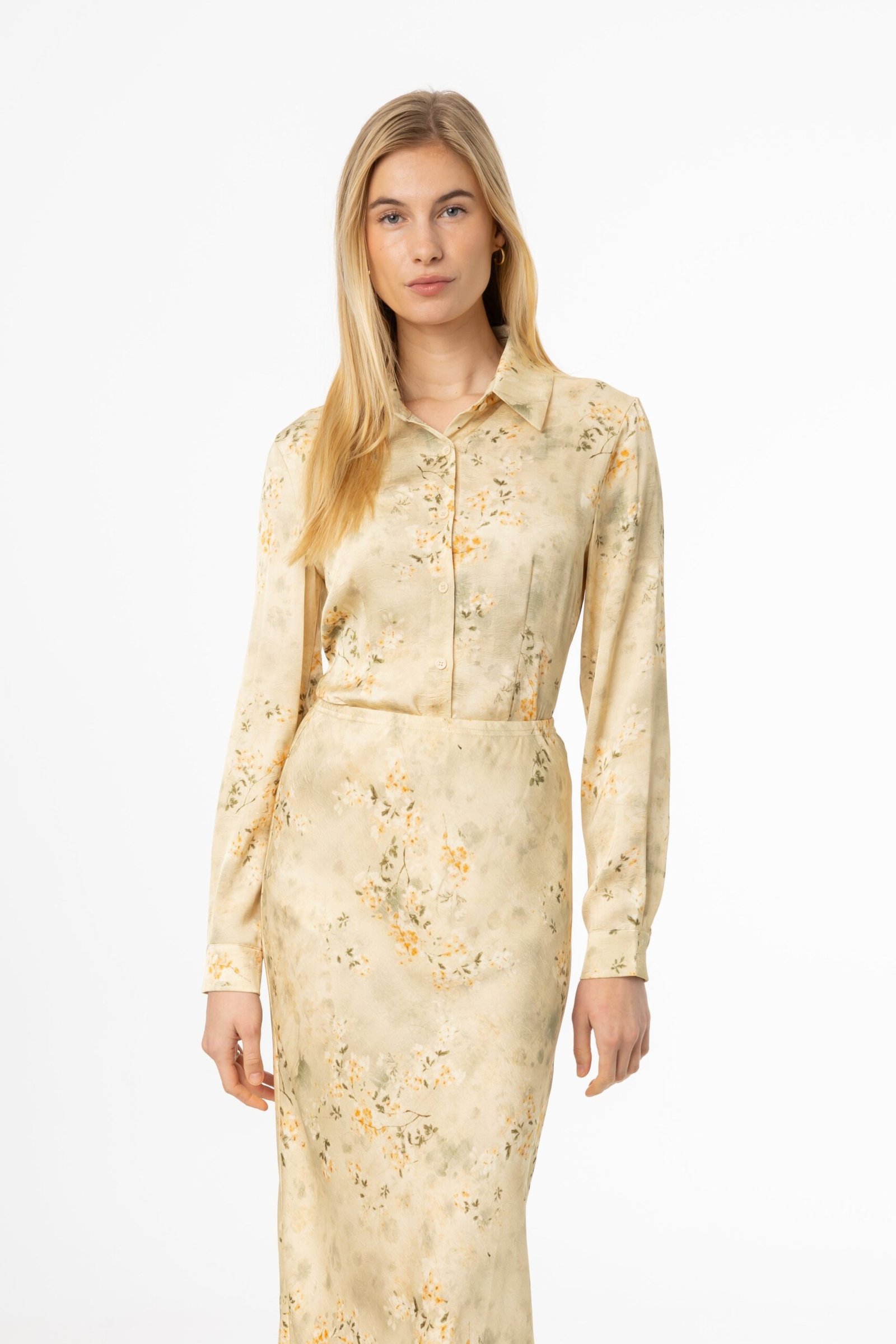 A neutral floral print that works for everything? Yes. please. This blouse blends soft tones with a lightweight feel. making it an easy choice for sunny days. Wear it with a for a relaxed. weekend-ready look. or pair it with a pleated midi skirt and heeled sandals for a brunch date. Need a little extra polish? Throw on a blazer and let the floral print do all the work.