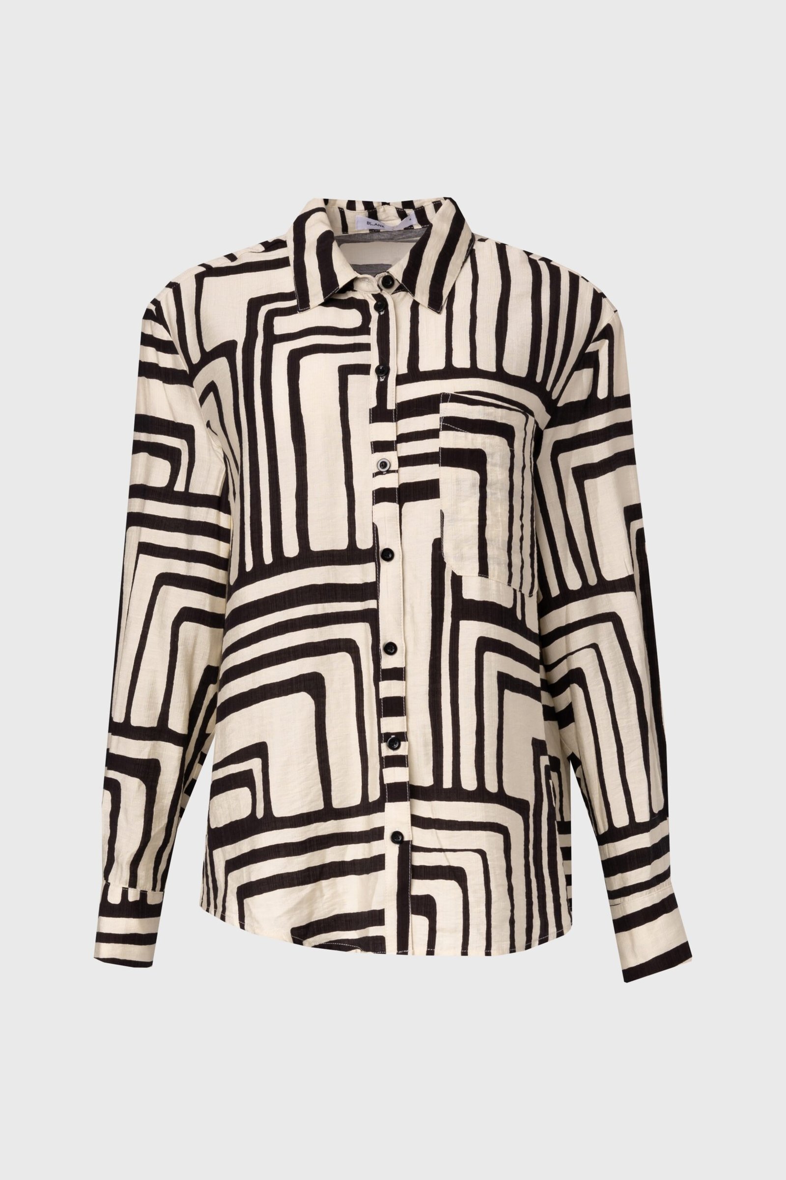 A little bold. a little playful—this black geometric printed blouse brings energy to any summer outfit. The lightweight fabric keeps you cool. while the striking print makes sure you stand out.